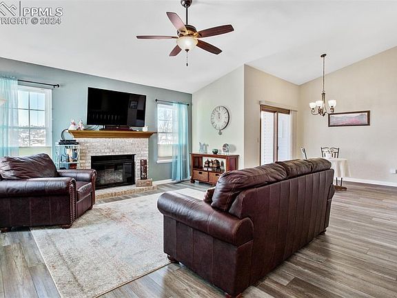 This charming, well-cared for townhome in the heart of Briargate boasts a perfect blend of modern convenience & scenic tranquility. The warmth of LPV floors, a classic brick, gas fireplace & vaulted ceilings are a central feature to the living space. Natural light pours in thru the multiple, newer windows. Enjoy the tastefully updated kitchen, complete w/sleek Corian countertops, updated appliances, glass tile backsplash & plentiful cabinet space. Exit the sliding glass door off the dining area to a private deck overlooking Rampart Park & open space. Sip your morning coffee while soaking in the views and enjoy glimpses of the majestic mountains in the distance and views of the Air Force Academy. Catch the fabulous Thunderbirds perform right from your deck. Entertain effortlessly in this "Ranch style" home featuring 2 main-level, generously sized bedrooms. The master suite inclds a large bay window w/dual operation blinds allowing wonderful nat'l light, mountain & sunset views while maintaining privacy. A beautifully updated ensuite features granite countertop & a tub/shower combination. The guest bath has also been fully updated to provide an oversized accessible shower. The basement is quite spacious offering a walk-out to the patio which again provides fabulous views & privacy. A convenient 1/2 bath allows for multiple living arrangements –whether for an office, fam rm, addt'l bedrm or combo of all. Laundry area is on the main floor for added convenience. Extra attic insulation, a humidifier & de-humidifier, plus a boatload of storage are a few of the extras you can expect. This meticulously maintained home exudes pride of ownership. All in a quiet community with EZ access to shopping, dining, entertainment, top-rated schools, & just minutes to I-25. Busy professionals, retirees & others will appreciate the benefits of having exterior maintenance done for you. With nearby parks & recreation, there's always something to explore right outside your doorstep.