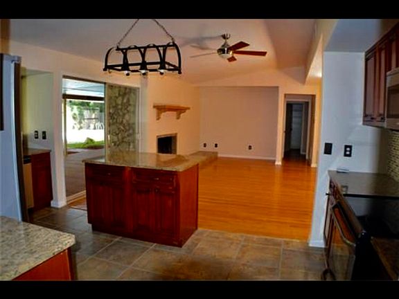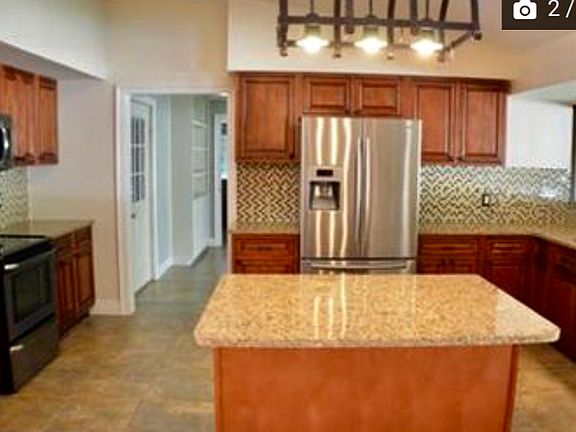 Remodeled in 2014 by Paul Davis Resorations this home has 2 bedrooms and 2 bathrooms (or two master suites) PLUS a separate Guest house with a bathroom and a small kitchenette area with a refrigerator.Huge carport, large front and backporch. Tall ceilings, neutral colors, no carpet, beautiful windows, large entryways, lots of closets. Office/Bonus Room with sliding glass doors that lead to the back yard.The Kitchen, Living Room, Den and Formal Dining Room are open,large sliding glass doors. Lots of windows for natural light, updated fixtures, throughout. Kitchen has a large sliding window over the sink that looks out onto the backyard. With decorative backsplash, stained cabinets, stainless steel appliances, complete with an island bar. The den area has a gas log fireplace with decorative tile, wood mantel and a built up hearth to sit around to enjoy.The Dining Room has wood flooring, beautiful light fixture and a built in serving area with a decorative backsplash.