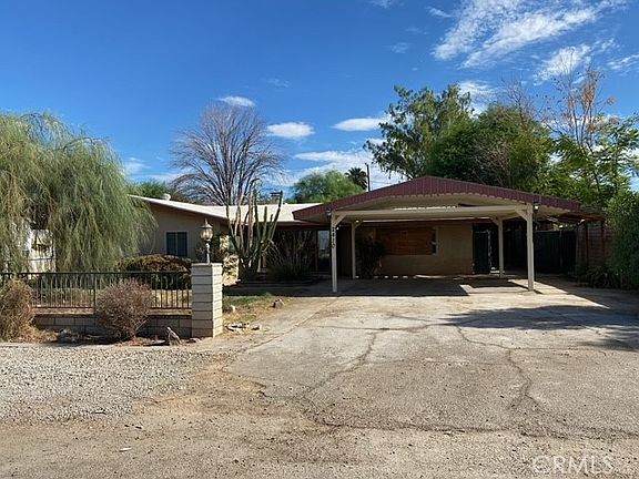 Come and discover your desert paradise with a huge double RV garage/workshop on roughly a 1/2 acre. This 3-bedroom, 2-bath home redefines comfort and style. The living room features a grand stone fireplace and floor to ceiling windows that fill the space with natural light. Transition over to the family room for TV time and a nice den off kitchen. The uniquely designed backyard hosts 3 detached storage rooms and a small inground pool AKA spool, covered patio and decking. There will also be low water bills with the well and septic. Private yet conveniently located, an opportunity like this won't wait around.