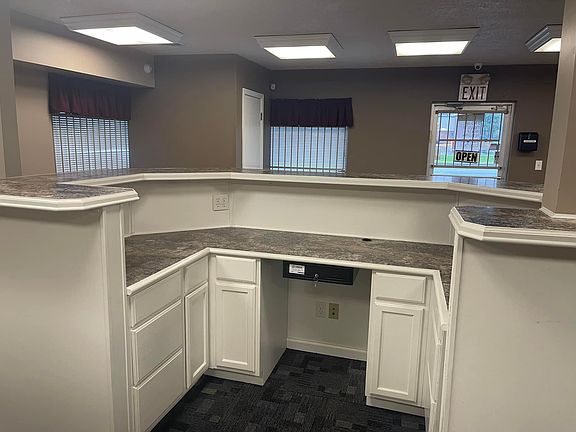 OFFICE SPACE FOR LEASE. Located directly on Fort Campbell Boulevard in Hopkinsville, KY. Space has new carpet throughout, new lighting, and is partially furnished with a desk and conference table. Property includes kitchen area, half bath, space for outdoor lighted signage, two cubicles, reception counter with storage, electronic cash door, drop box door, conference room with cabinets, and a large white board for meetings. One year lease at $1450.00 per month. Available March 1, 2025. 1 year lease available with extensions. Renter is responsible for all utilities excluding gas and water. Property comes partially furnished with desks and conference table. Renter is responsible for all advertising cost for lighted signage. Renter must keep the parking lot clean and clear of all trash and weeds. Property is AS IS, tenant may with written approval from landlord do property lease improvements.