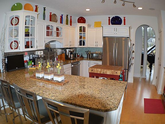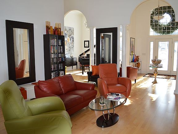 Elegant Single-Story Home on a Cul-de-Sac Road This impeccable 2,402 sq. ft. home offers single-level living at its finest, with eight thoughtfully designed rooms, 3 bedrooms, 2.5 baths, and a 3-car garage. Situated on a quiet, tree-lined cul-de-sac road, this property has lush landscaping and a backyard with a serene, wooded backdrop for ultimate privacy and relaxation. Highlights: • Architectural Elegance: Dramatic rooflines, cathedral, sloped and tray ceilings, archways, and pillars. • Bright & Spacious: Expansive windows fill the home with natural light. • Premium Finishes: Maple floors throughout, granite countertops, and granite flooring in baths and laundry room. • Chef’s Kitchen: Large granite island and countertops, ample cabinet storage. • Modern Comfort: Newer central AC, natural gas log fireplace, and a home standby backup generator. • Convenience & Technology: Central vacuum system, ceiling and in-wall sound system, LED downlights inside and out, and lawn irrigation system. • Outdoor Appeal: Mature, lush landscaping enhances the peaceful setting. This home combines modern amenities with timeless style, perfect for entertaining or enjoying peaceful moments in the backyard’s wooded retreat. Location Benefits: Set on a tree-lined cul-de-sac road of distinctive homes, the property offers a blend of privacy, community charm, and convenience to nearby amenities.