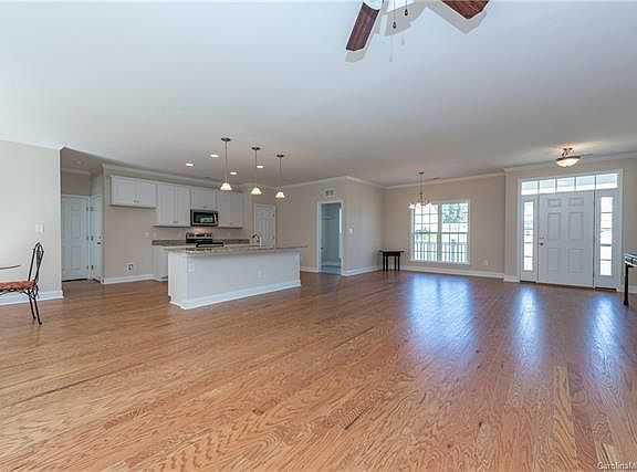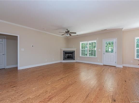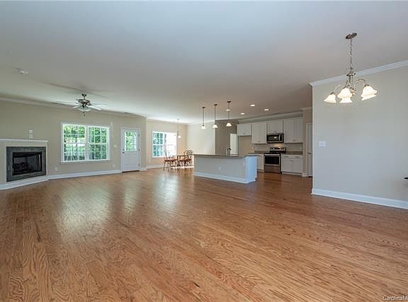 BRAND NEW home in phenomenal location convenient to shopping, entertainment, restaurants and more! The charming rocking chair front porch is perfect for relaxation. Great open floor plan featuring hardwood flooring, crown moldings, fireplace, and separate breakfast and dining areas. Bright kitchen with white 42" cabinets, beautiful granite countertops and SS appliances. The master bedroom has tray ceilings, 2 large walk-in closets, and en suite bath. The master bath boasts separate shower/garden tub and dual vanities. Finished 2 car garage! Oversized partially covered patio with cozy wooded views.