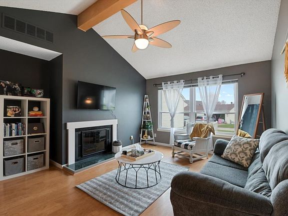 This 2 bedroom, 1 bathroom with 2 car garage condo is located in the popular Parkland Ridge subdivision. Open concept living room features a wood burning fireplace, a large window that allows tons of natural daylight and soaring vaulted ceiling complimented with wood beam that matches the laminate wood floors. The kitchen has great cabinet and counter space and a newer refrigerator and dishwasher. A spacious full bathroom sits between two generous size bedrooms. Additional storage space can be found in the 2-car garage. This unit is close to a park with a pond, bus line, college and shopping. This condo is sure to impress. Pre-inspected and ready to move right in and enjoy!