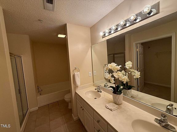 2 bedroom/2 bath top floor, end unit in Brier Creek with over 1200 sq. ft! Sunroom has lots of windows for a naturally bright space. Master bath features separate bath, shower and double vanity sinks. Amenities include: pool, tennis and pickleball courts, playground, putting green, and gym. Close to RDU, RTP and the shops and restaurants of Brier Creek. Call to find out how to make this home yours!