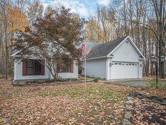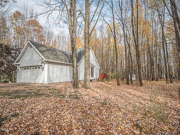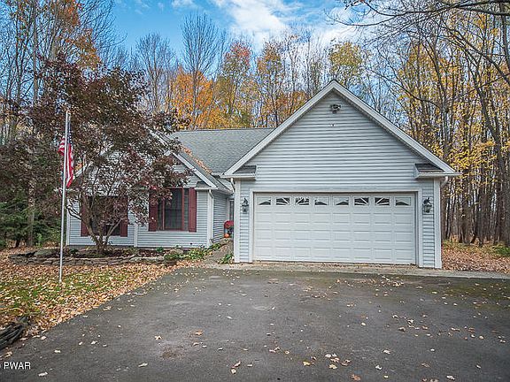 Bright and spacious single family ranch on over 4 acres with paved arching driveway, 2 car garage, Master bed/bath suite with propane fireplace and jacuzzi tub, hard wood floors, central AC, central vacuum, forced hot air, Built in water filtration system and large open lower level with plenty of room to expand. Located just 15 minutes from both Scranton and Lake Wallenpaupack, you get to enjoy the best of both worlds; Privacy and convenience! Naturally growing blackberries, raspberries and blueberries throughout the property! Call to schedule a showing with your realtor today!