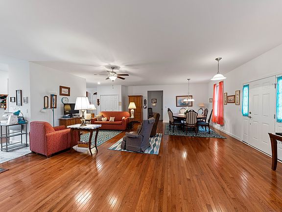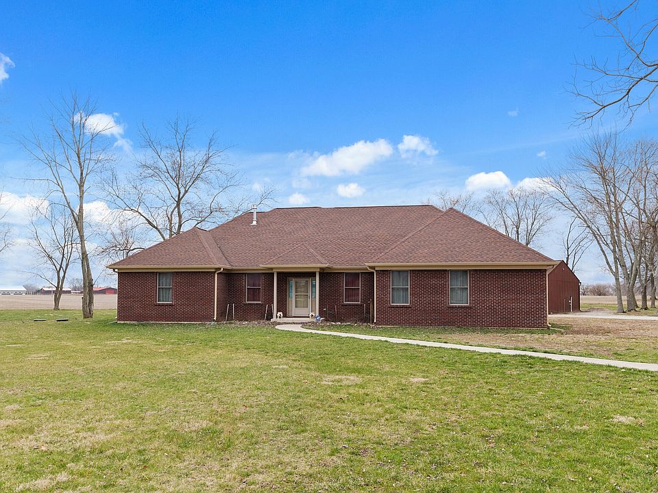 This beautiful home nestled up in Franklin on 2 ACRES is a charming full brick 4 Bedroom, 3 1/2 Bath Split CUSTOM HOME. This sprawling ranch home was built in 2017, has over 2500 SF of finished living area and includes 9' Ceilings throughout the entire home with an open concept to satisfy all of your hosting needs. The entire home features hardwood floors and tile floors, a gas log brick fireplace and 2 car attached garage. This home is built on a Crawl space, has Covered porch , and large 2 Car Garage SS appliances, Laundry room Featuring 4 bedroom, 3 1/2 bathroom which include tile floors 2 water heaters - heat pump with gas backup. Great location close to town, schools, and I-65 for easy commute!
