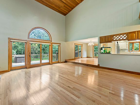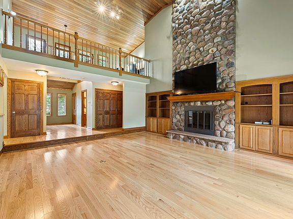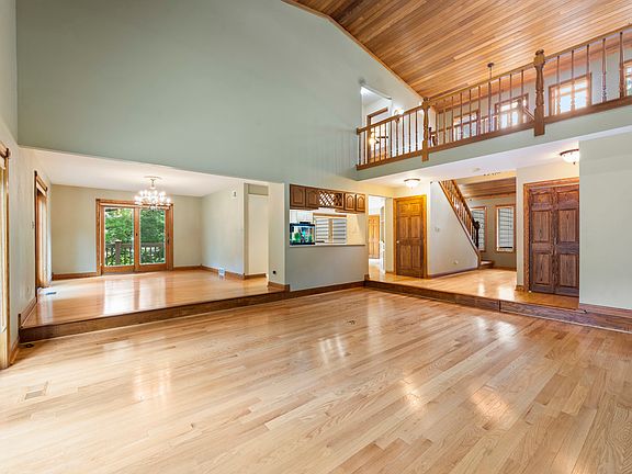 Welcome to this beautiful CUSTOM built home that is located in the amazing Martin Woods Subdivision - situated perfectly on a 1 acre lot that has the feel of being in your own private forest preserve! The abundance of mature trees and beautiful landscaping add to the peaceful and serene feel of the property. As you walk up to the home you are greeted by the gorgeous professional landscaping, fresh exterior paint and new driveway. Step inside and you will fall in LOVE! Gleaming hardwood flooring, new doors, baseboards, crown molding throughout most of the main floor. The entire interior of the home has been freshly painted. The kitchen offers an abundance of refreshed white cabinetry, solid surface countertops, tile backsplash and a full stainless steel appliance package with a double oven and a huge center island with seating for four! Pass through bar area divides the kitchen and family room. Whether you are preparing a gourmet meal or a quick snack, the kitchen is sure to inspire your culinary creativity. The adjacent breakfast area has a slider door leading to a deck. This is ideal for grilling out. Large dining area with two sets of slider doors leading to the deck space. This home offers so much space and is ideal for entertaining your family and friends. Dramatic family room with soaring cathedral cedar planked ceiling, a stunning floor to ceiling stone fireplace flanked by built-in bookcases on each side, and a slider door that opens up to a nature lovers paradise with a wrap around porch. This is the perfect spot to enjoy your morning coffee or unwind in the evening after a long day. Main level master retreat with cathedral cedar plank ceiling, fireplace, and slider door providing access to the deck. Spa like bathroom with a jetted Whirlpool tub, walk-in shower with full body sprays, dual sink vanity and heated floors. Convenient updated powder room and laundry room on the main level as well - Newer washer & dryer stay with the home. Head upstairs and find a spacious loft with a built-in desk area along with two additional and spacious bedrooms and a convenient full bathroom with a dual sink vanity and a tub/shower. Enjoy the extra living space that the finished English basement offers. Large recreation or family room with a 3rd fireplace boasting the same gorgeous stone as the family room with built-in shelving on each side. The fourth bedroom and full bathroom top off the basement. The cement crawl is ideal for all of your storage needs. The oversized attached 2.5 car garage is heated and provides room for parking your cars or additional storage space. The backyard space is amazing and offers a screened in gazebo with ceiling fan, storage shed, firepit and invisible fence to keep your pets safe and secure. New water softener in 2018, well pressure tank replaced in 2023. Wonderful location in between McCullom and Wonder Lake, 10 minutes to downtown McHenry with tons of shopping, restaurants, train and more. This unique property is truly one of the best that McHenry has to offer! Schedule your showing today.