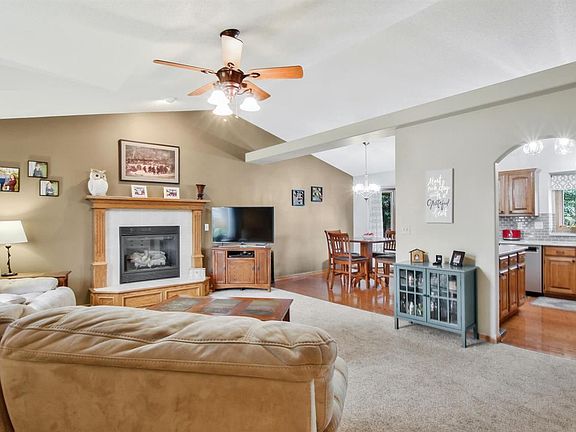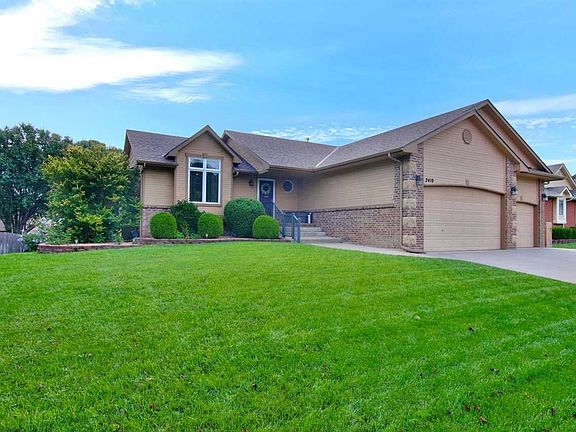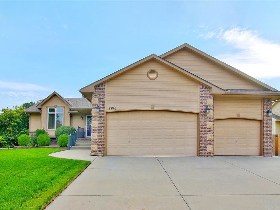 Lovely 4 bedroom, 3 bath home with 3 car oversized garage in Aberdeen addition. Extra wide front sidewalk and steps. Home features vaulted ceilings, 2 gas log fireplaces, granite and stainless appliances in kitchen. Wood floors in kitchen and dining area. Main floor laundry Master bedroom with lighted coffer ceiling and double sink vanity in master bath with tub/shower combo and walk in closet. Custom 12 X 20 deck cover with coffered ceiling with recessed lighting and fan Garage has attic fan and pull down stairs. Well and sprinkler system Electrical includes a power outlet in backyard for a pool and a generator circuit Maize schools and no specials!!