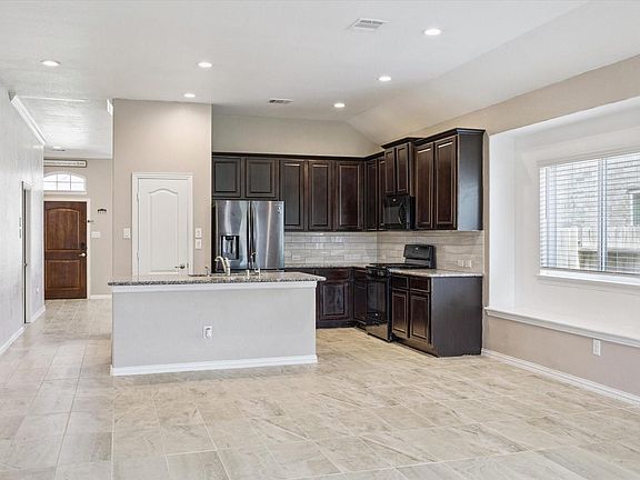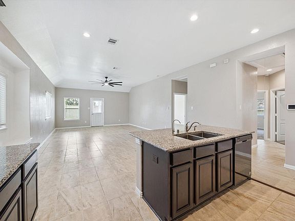 Welcome to your move-in ready home in Sierra Vista! With three bedrooms and expansive living space, this home offers a thoughtfully designed open-concept layout for comfortable everyday living and effortless entertaining. Premium finishes include granite countertops, a large kitchen island, carpet and tile throughout, and family room open to the kitchen and breakfast areas. The primary retreat features an en suite bath with both a soaking tub and shower, complemented by a large walk in closet. A separate formal dining and living room area offer ultimate flexibility for entertaining or a private home office space. Relax outside under the covered patio with a fully-fenced backyard and no rear neighbors for added privacy and serenity. Additional conveniences include a 2-car attached garage, in-home laundry room, refrigerator included, and community amenities!