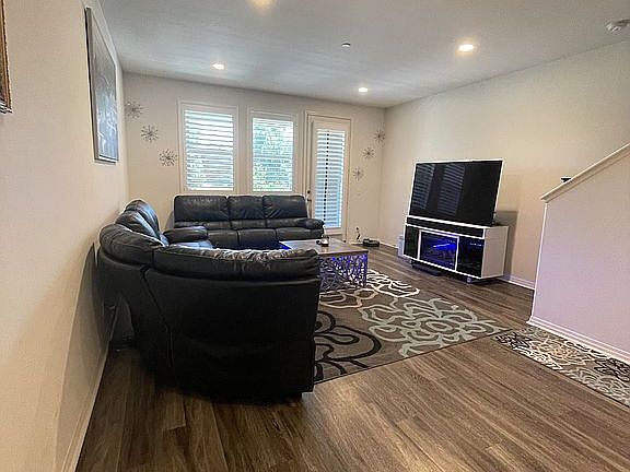 Three story townhome (1st: garage; 2nd: kitchen/den/living; 3rd: two bedrooms) Pool Features: Community, Association Patio and porch details: Concrete, Front Porch Ring System, smart EcoBee thermostats Appliances included (washer, dryer, fridge, microwave) Please advise: 9 month lease for this townhouse! The renter is responsible for gas and electricity. HOA, water, trash, and sewer are included in rent. Last month's rent due at signing. No smoking allowed. One pet permitted.