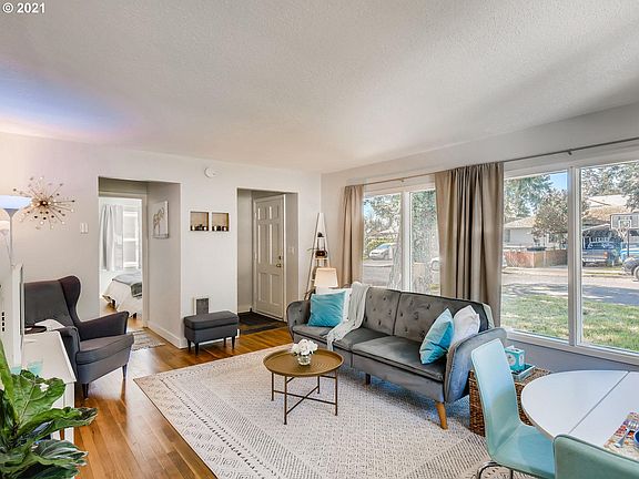 Darling move-in ready home is filled with light & has refinished hardwood floors, updated bath, and is freshly painted throughout. Kitchen has new stainless appliances, updated cabinets, slate countertops. The soft trendy color palette will please the most picky buyers! Huge private yard lets you play in the sun and garden to your heart's content. Private parking pad. Newer roof & 1 yr old mini split provides A/C. Double paned windows. Hurry! [Home Energy Score = 6. HES Report at https://rpt.greenbuildingregistry.com/hes/OR10190578]