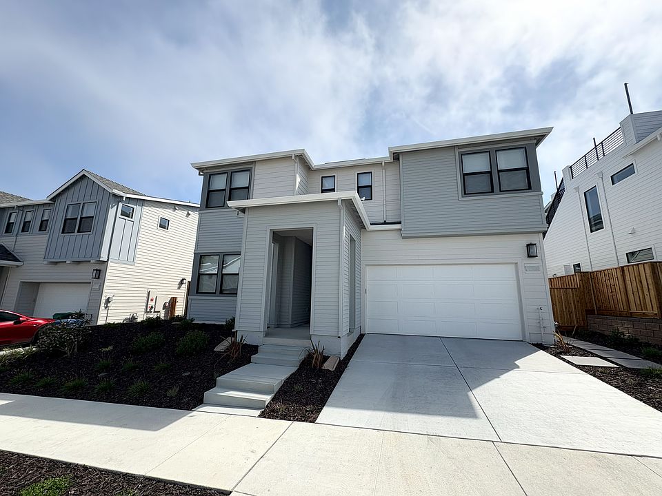 New home for rent located in the Dunes Community within walking distance of the Dunes Shopping Center, Trader Joes, Target, REI, Fort Ord State Beach, California State University Monterey Bay, Montage Health Center. Large open floor plan on first floor with kitchen, dining and living room with fireplace that opens to patio and backyard. One bedroom with private full bath on first floor. Family room and office on second floor opens to covered deck. Master bedroom with spacious bathroom, walk-in closet, and two bedrooms and full bath on second floor. Laundry room on second floor has washer, dryer and sink. Two car garage. Water softener, water filter at kitchen sink, solar energy. Ocean view from the roof top patio. Landlord pays garbage, sewer and HOA fees. Tenant pays water, gas, electric and internet fees. One year lease required. No smoking.