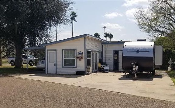 Certified 55+ Gated community. Motivated Seller!!! This residential Lot is situated on a corner lot with a beautiful mature oak tree and planter garden. The lot has a 288 sq. ft. Texas room that has a Livingroom, small bed, kitchen and full bath. The Texas room has a Wall AC unit and is fully furnished. The washer and Dryer are located in the attached storage building measuring 120 sq. ft. The Texas room has a covered canopy with space for one vehicle. 2021 Pull Trailer NOT INCLUDED IN SALE OF PROPERTY.