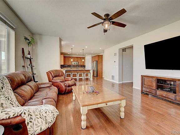 This unique, upgraded home is the coveted Allison model and features a unique, Multi-generational suite in the walk-out basement. Complete with a separate washer/dryer, full kitchen, bedroom/bathroom, its own separate portion of the backyard, and a gate to its own private patio. Beautifully backing to open space with soaring views, the main floor features wood floors throughout, a gourmet kitchen with granite countertops, a newer backsplash, a large center island, and eat -in nook, excellent for entertaining your guests. The main floor also boasts a large bedroom/office and full bathroom. Take the soiree outside to the large deck, patio, and backyard with upgraded cedar pine fencing that backs to the greenbelt- this is the largest lot on the cul-de-sac! Upstairs, relax in the loft with bamboo floors, or unwind in the primary suite separated by the gorgeous barn door. Don't miss the 4 bedrooms upstairs plus a loft and laundry. The oversized garage features a workshop, excellent for all of your projects. Enjoy stunning mountain views, and proximity to schools, golf courses, shopping, downtown, Douglas County Fairgrounds, and Plum Creek Golf Course (a 30-minute walk, 20-minute walk, and 5-minute walk respectively).
