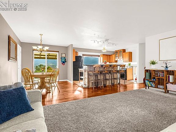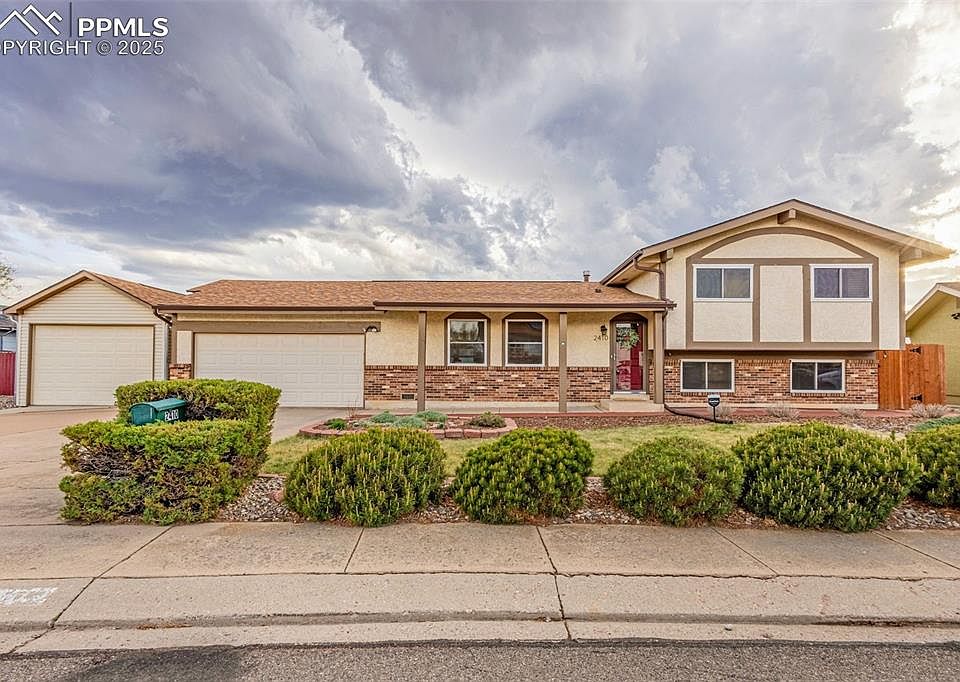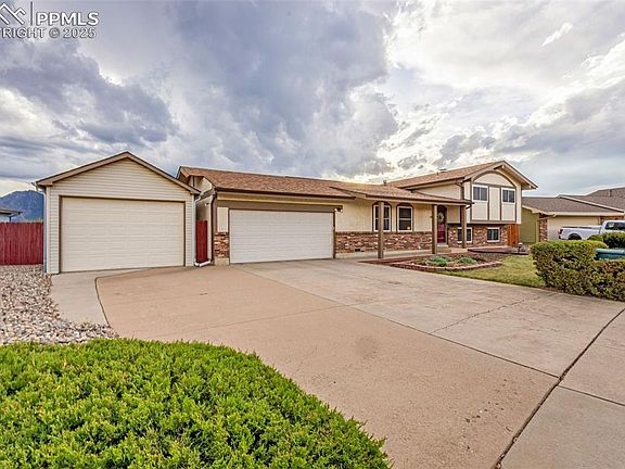 This stunning home offers three bedrooms, three bathrooms, and two spacious living areas, all perfectly situated on a huge, landscaped lot in a quiet cul-de-sac with breathtaking mountain views, including front-row seats to Pikes Peak fireworks. The large, updated kitchen is designed for both functionality and style, making it perfect for daily living and entertaining. The cozy living room features a beautiful fireplace, creating a warm and inviting atmosphere, while the master bedroom offers a private retreat with an attached bath. Recent updates include a brand-new central air system and furnace within the past year, ensuring year-round comfort and efficiency. A two-car garage is paired with a two-car tandem garage, providing ample space for a boat, camper, or extra storage needs. Outside, the expansive lot offers endless possibilities for outdoor enjoyment, complemented by a handy shed for additional storage. With incredible mountain views, thoughtful updates, and an unbeatable location, this home is truly one you won't want to miss.