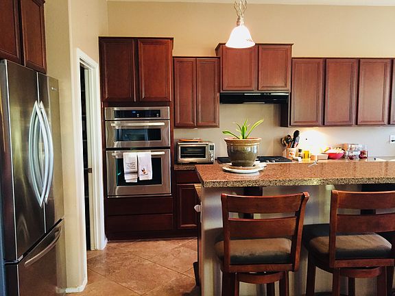 Incredible 4 bedrooms (3 bedrooms plus den with no closet), 2.5 bathroom, 3-car garage, single story home in Phoenix. Just minutes from downtown Phoenix and Tempe. This home boasts no rear neighbors, view fencing, picturesque views of downtown and South Mountain. This split floorplan has over 2,400 sf of beautiful living space, Great Room with fireplace and built-in niches, pre-wired for surround sound and arched doorways. Large open kitchen offers granite counters, stainless steel appliances, wine fridge, breakfast bar/island, pendant lighting, pantry and much more. Large master includes full tiled bathroom with dual vanities, separate shower/tub and 2 large walk-in closets. The 2nd bathroom has dual vanities. Backyard is spacious with covered patio, gas connection for BBQ and