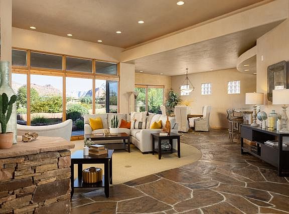 Million dollar views with an incredible casita! This home features floor to ceiling windows to capture these phenomenal unobstructed Snow Canyon and golf course views, skylights and abundant amount of natural light, exotic thick cut granite, WOLF and Commercial KitchenAid appliances, solid wood doors, big bonus entertainment room, multiple storage rooms, professional office with upgraded matching desk with granite and built in book cases, smart wired home, Oversized 2.5 car garage that the owner has fit 2 cars plus a golf cart, full sauna built with downstairs bath and brand new $10,000 HVAC. Seller has also had roof replaced less than 4 years ago. Buyer to verify all information, deemed reliable, however buyer to verify all info including utilities & HOA information if applicable.