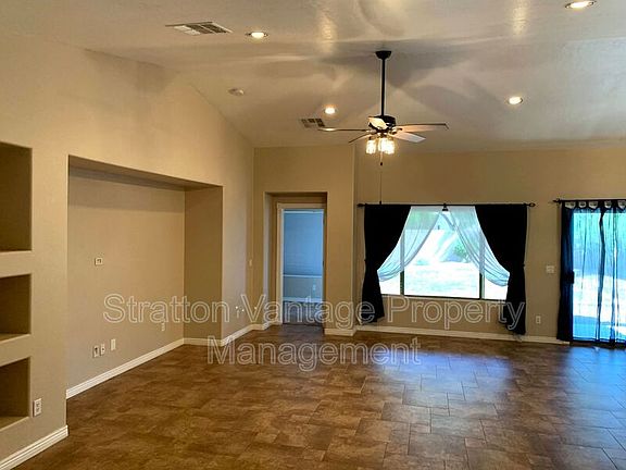 This home offers neutral tones throughout, open floor plan w/vaulted ceiling, lots of light, a great room, kitchen w/breakfast bar and adjacent dining area, large master bedroom with slider to patio split from other bedrooms, gorgeous inlaid tile in traffic and wet areas, upgraded laminate hardwood in 2 bedrooms, upgraded baseboards and trim w/rosette corners throughout, double doors at 4th bedroom/den, security screen front door, ceiling fans throughout, landscaped oversized backyard w/sprinkler system and. Property is well maintained and move-in ready! Located Near Gary and Empire! *BEWARE OF SCAMS! We do not list our homes on Craigslist or Facebook Marketplace. Please get in touch with Stratton Vantage Property Management to confirm availability and rent price* INITIAL MOVE-IN COSTS - Security-Deposit - minimum is 1.25X monthly rent but not greater than 1.5X the monthly rent (75% may be refundable) First Month Rent + 3% Admin Fee + $75 Resident Benefit Package Setup Fee Lease Preparation Fee: $225 *Pets - If Applicable, a minimum Non-Refundable Pet Fee in the amount of $250 per pet is required - (Some Breed Restrictions Apply) Does Not Apply to Assistive Animals *Pets - If Applicable, the First Month of Pet Rent in the amount of $60-$80 per pet, depending on the type of pet(s), which includes a $30 pet administrative fee (Some Breed Restrictions Apply) - Does Not apply to Assistive Animals RECURRING MONTHLY COSTS Rent + 3% Admin Fee $75 Resident Benefits Package - (includes renters' insurance, credit reporting, rewards program, and more) *Pet(s) If Applicable, $60-$80 per pet, which includes a $30 pet administrative fee Does Not apply to Assistive Animals *BEFORE YOU APPLY TO RENT THIS PROPERTY, PLEASE VISIT OUR WEBSITE TO REVIEW OUR RENTAL QUALIFICATIONS AND LEGAL DISCLOSURES ADDITIONAL DISCLOSURES Brewer & Stratton Property Management LLC is an Arizona Limited Liability Company dba Stratton Vantage Property Management. 12-month minimum lease term (longer lease terms may be negotiated). Stratton Vantage Property Management does business in accordance with the Fair Housing Act. Stratton Vantage Property Management does not discriminate against anyone based on race, color, religion, sex, handicap, familial status, or national origin. The information contained in this ad is accurate to the best of our knowledge. Stratton Vantage Property Management is not responsible for any error or omission in the wording or content of this information. Amenities: dishwasher, microwave, washer/dryer, range/oven, disposal