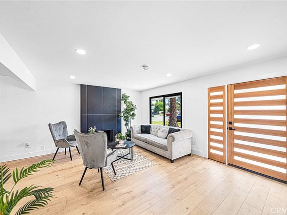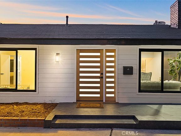 The home that you have been patiently waiting for is finally available. Everything you want and need is right here. The moment you pull up, you will notice The Modern Ranch style with the black and white color that brings a timeless look to your new home. Walking through the front door, you will love the open floor plan for entertaining or lounging. There is new vinyl plank flooring throughout the home, recessed lighting, black windows & sliding doors, and natural lighting in every angle of the home. At the center of the Living Room features a remodeled tiled fireplace and opens up to the Dining Room and the Kitchen. The Dining Room is off the side of the Kitchen and could hold your long table for hosting all the holiday meals at. The new black sliding door to the backyard leads you under the back patio porch with newly laid grass. The Backyard is the perfect size. The Kitchen offers soft closing cabinets with bronze hardware, quartz countertops, new stainless-steel appliances, and a a beautiful custom island. The Primary Bedroom is very large for whatever size bed you may need. The Primary Bathroom is a must see, with a gorgeous walk-in shower, extra-large double sink and tile flooring, this is a must see. The two large guest bedrooms share the second full bathroom that features a new tub and shower. There is a two-car garage with an extra-large driveway. The landscaping is fresh and newly manicured. Close to parks, restaurants, schools, the freeway and shops. This home and location are incredible. WELCOME HOME.