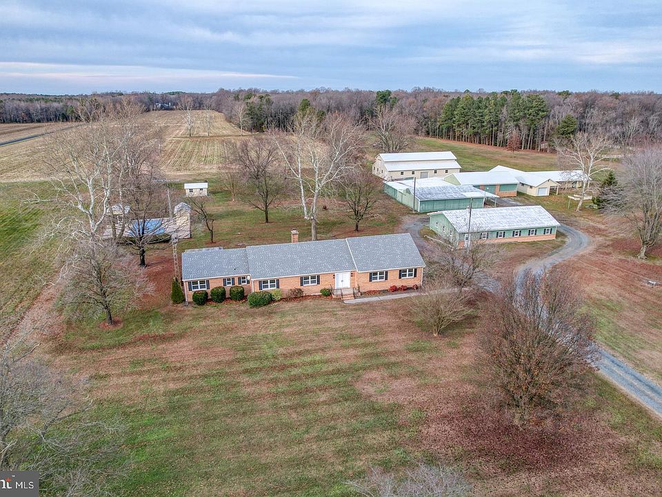 Huge Price reduction for quick sale! Beautiful rural location on 12 acres with outbuildings! The home is a fully bricked Ranch with large rooms, option to have a second primary bedroom suite with screened porch! Wood burning fireplace, fresh flooring and paint make this home move-in ready. In ground pool has been winterized. Multiple outbuildings include the office with main area, 2 separate offices and bathroom attached to the main shop with car lift included! the second address is for the office/shop building, but has potential to be a 2 bedroom "accessory apartment" or "in-law suite" with its own electric meter and service. 2 more detached buildings provide ample storage and areas for equipment, etc. The rear building is a ten stall horse barn strategically located to the areas that were previously used for pastures. So many possibilities with this property!