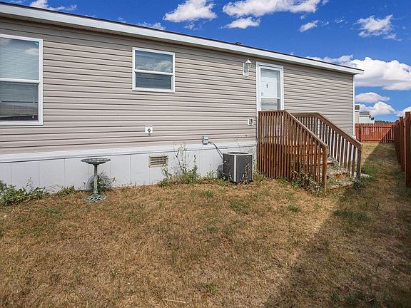 Brand new carpet in this well kept 3 bedroom, 2 bathroom manufactured home in a cul-de-sac. It's open plan kitchen and living room plus separate family room provide lots of space. Large master suite with walk in closet, plus soaker tub too. The large deck out front is perfect for those summer evenings. The home also has a huge fenced in yard with shed. It also includes the arctic package which means that there are heating pads on the holding and water tanks as well as the elbows on the sewage drains that when turned on will automatically come on when temps drop below freezing to prevent pipes from freezing.