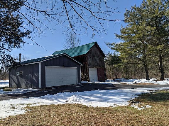 This home has a rainbow shape paved driveway, with a newer metal roof, windows and updated kitchen. The fenced in back yard allows for a secure space for pets and children. The 4 acres is private with beautiful pine trees. The pond was professionally cleaned and makes for stunning views no matter what the season. Upstairs has 2 bedrooms, downstairs has 2 bedrooms with a large full bathroom. Past the kitchen is the laundry and half bathroom. Heating this home brings options with a wood stove, pellet stove and/or oil heat. The wooden floors, and wooden doors give this home so much character! The front enclosed porch allows for space to enjoy your morning coffee or your 5pm cocktail! Quick drive to Ithaca in the Trumansburg School District. Need Storage? There are 2 detached garages and a barn. The garage also offers heat! This is the house you have been waiting for and its ready for you!