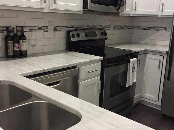 Price Reduced. Great Location. Near shopping, great food, and entertainment. Beautiful updates! Marble counter tops, stainless steel appliances, and open floor plan. All flooring is new, walls and trim are freshly painted, cabinets painted, back splash installed. Bathrooms have new sinks, faucets and toilets. The amenities included a secured parking area, reserved parking space, fitness room, and a community room!