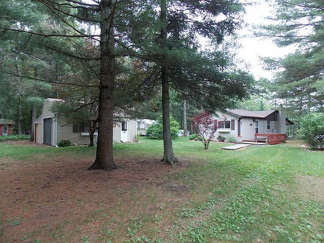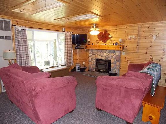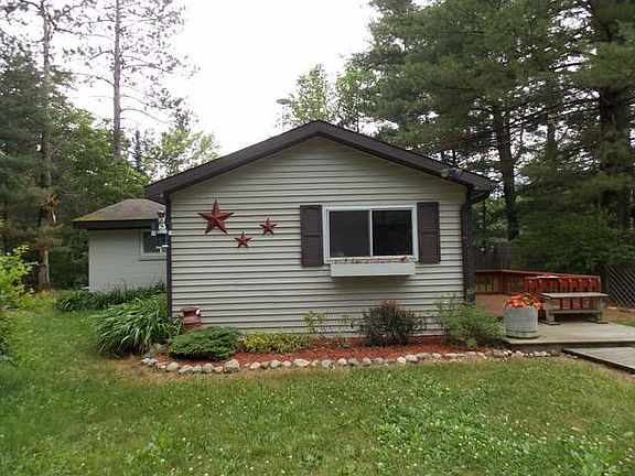 Nicely maintained 2 bedroom possible 3 bedroom home, 1 full bath with approx 90 feet on the Muskegon River. 11x23 detached garage has been turned into a guest house with a loft sleeping area & 10' lean to for storage as well as an 8x8 shed. Home has been beautiful updated with knotty pine through out, oak kitchen cupboards, cedar bedroom closets, sky lights & big picture windows with panoramic views with a semi-private setting. On the cooler days, snuggle up in front of the natural wood burning fireplace in the living room. Home comes mostly furnished, so bring your tooth brush and enjoy the up north atmosphere! Enjoy kayaking, swimming, fishing, and is located near thousand of acres of state land for hunting and trail riding.