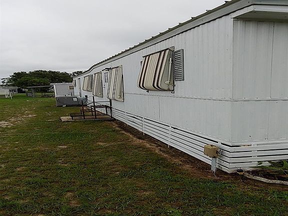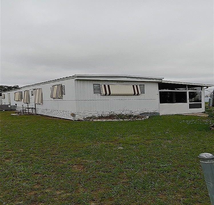 NICE well maintained 2 bedroom with (1) Full & (1) 1/2 bath mobile home. This 12' X 57' sits on 2 lots that have been legally combined to make a 75' X 105' Lot. It has a Newer AC & Furnace along with a new water heater, Cabinets, Laminate Flooring in kitchen, All newer appliances, stove is a bit older than the rest but still in perfect shape, kitchen cabinets are oak, there is a nice pantry easily accessable from the kitchen/dinning area. Bathrooms have newer toilets and bathroom sinks, the half bath has a large stand up shower. Outside it has two conventional metal sheds the first one adjacent to the screened porch/car port is the laundry and work room. The Car Port/Screened porch has a double swing screened door that allows you to pull the car or golf cart right in. One of the sheds has a workbench as well. All of this and the Smith built shed with roll up door houses the golf cart and charger that also comes with the deal. All furnishings that you see and all misc. items as well come with the mobile home. You will see a large frame made of PVC pipe which supports the canvas coverings stored in one of the sheds. Some assembly required. It also has a slab under the frame work for your fishing boat or car. So bring your toothbrush and clothes, you will be ready to move in. For an extra $10.00 you may join the clubhouse for potluck or the annual yard sale.