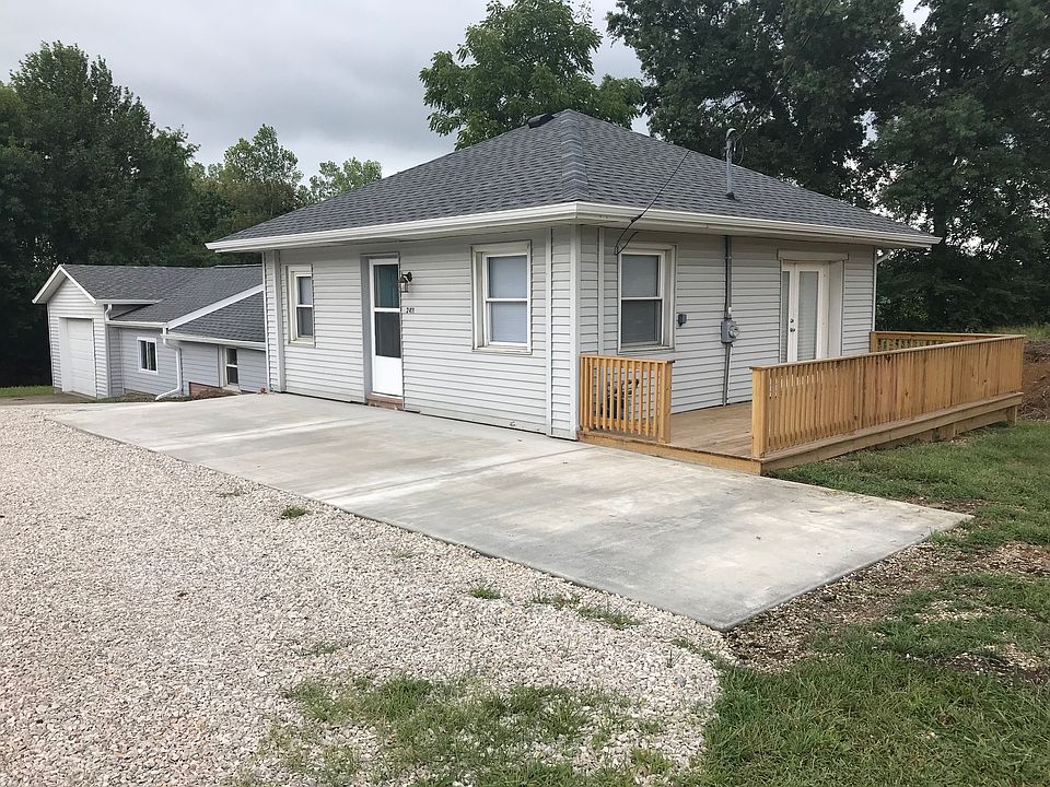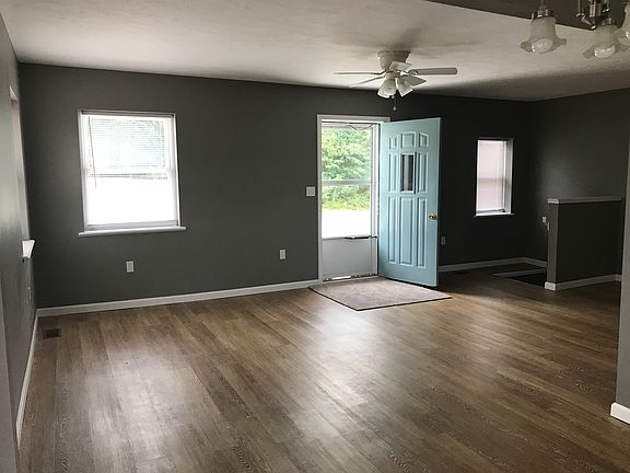 This is a country setting conveniently located on the edge of town. Two large bedrooms, Master bedroom with vaulted ceilings, one bath, open floor plan, nice closets. All appliances included. One car attached garage. Nice, private back yard, deck, Concrete driveway. Don't miss this opportunity to own on the East side of town with almost an acre lot and commercial potential for a business or office space. This house has been completely remodeled with new electrical, plumbing, drywall, flooring, etc!