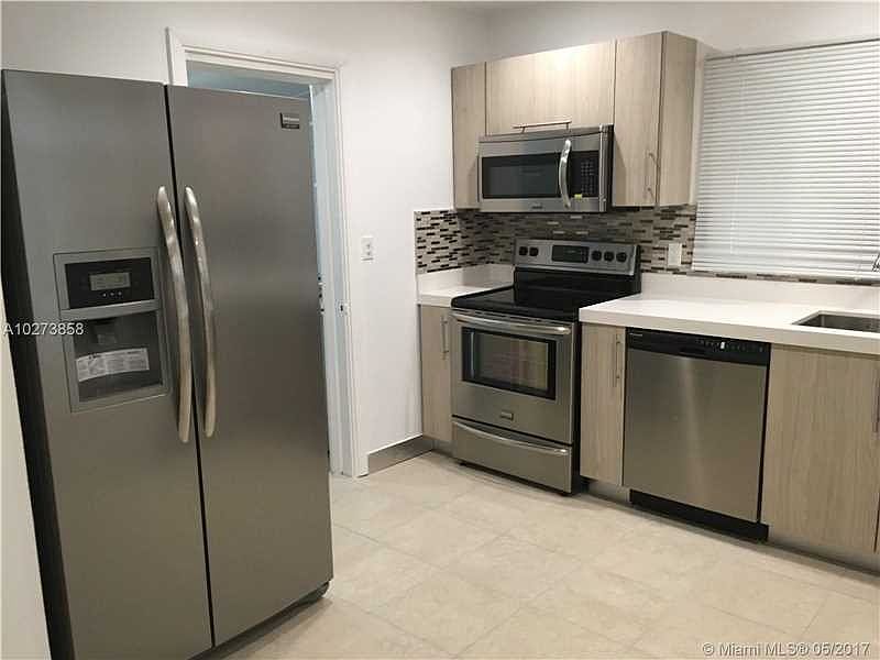 This beautiful totally remodeled 3/2 single family home features a contemporary kitchen, European style cabinets, quartz counter tops and SS appliances. Tile floor throughout, new windows, freshly painted. Spacious laundry room w/ full size washer & dryer. Large fenced backyard W/ big storage shed. Includes an oversized detached garage w/ large windows that could be used as workshop. Close to schools, supermarket, hospital, restaurants, highways, 15 min from the beach. Fast approval