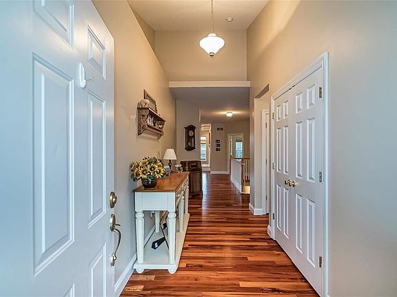When you enter this home you will find stunning tiger wood floors throughout the main level. There is lots of closet space for extra storage throughout the home. The formal dining room is spacious and open to the great room that has custom built in cabinets and shelving, surrounded by a marble gas starter fire place and beautiful wall of windows. The kitchen boast of 42" maple cabinets and stainless steal appliances. Double door pantry gives you so much storage for all your cooking supplies. The main bedroom has a private suite bath that offers 2 individual sinks and vanities, jetted tub and shower. This home is equipped with a stair lift. (That can be removed if buyer has no interest) The lower level has so much to offer with the large great room 3rd bedroom with a huge walk in closet and a kitchenette with sink and bar area just waiting for your finishing touches and the walk out basement. You will love the freshly stained deck overlooking common ground and oversize patio.