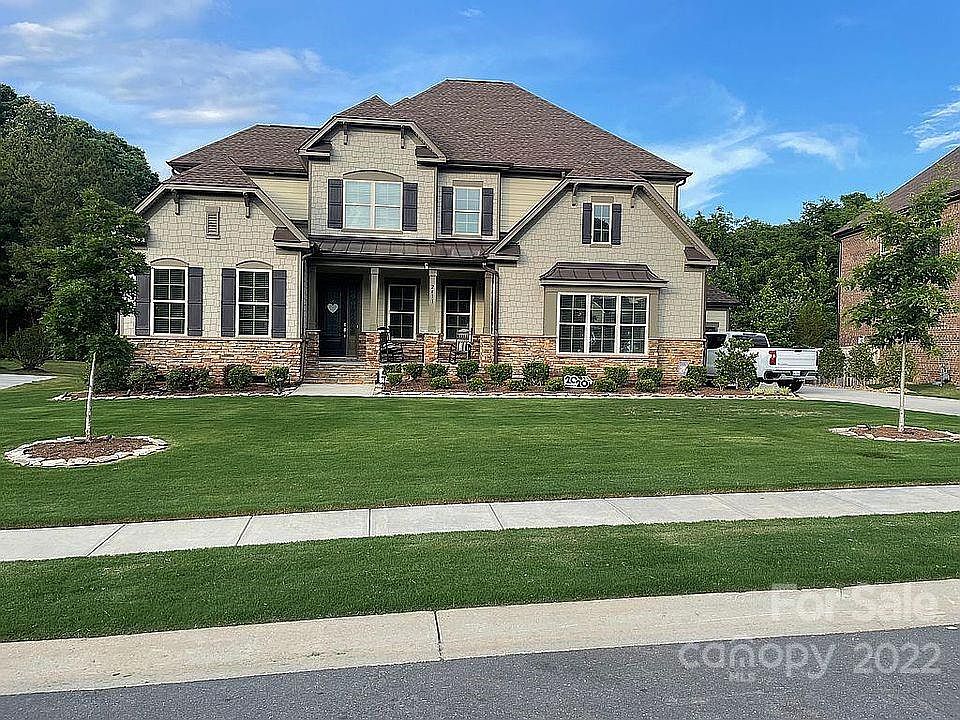 Monterrey model w/many upgrades on wooded lot, across from green space in Cuthbertson school District. In the Estates of Tuscany, this gorgeous home boasts 5 BR, 4.5 baths, HUGE gourmet kitchen w/solid wood, antique staggered cabinets, 11ft x 6ft Center Island, porcelain farmhouse sink, oversized breakfast area w/8ft. sliders, & enormous wrap-around deck. Kitchen w/pot filler, tile backsplash, granite countertops, SS appliances, 5 burner cooktop, & oversized pantry. Island overlooks great room w/gas fp., many windows for natural light, 10 ft. ceilings, 8 ft. doors, crown molding , 5in. hand scraped Bruce engineered hardwood floors, office w/coffered ceiling & French doors, guest suite w/private bath, DR., butler´s pantry, & drop zone all on lower level. Screened-in porch wired for TV, connects to deck. The Primary BR, laundry & 3 bedrooms upstairs, w/2 bathrooms & loft. 5´hand-scraped wood floors too. Primary w/walk-in closets, spa-like bath, tiled shower & soaking tub.