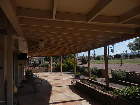 Without a doubt, this location has one of the best views in Apache Wells! Located on the 16th tee, this well cared for home overlooks the golf course, a lake, the Superstition Mountains to the east and the Usery Mountains. Spend your days under the huge covered patio. Also included, a large 2 car garage AND work shop as well as a two car covered carport! Inside, the remodeled kitchen with corian counters, maple cabinets and upgraded appliances including a convection microwave await your culinary delights. Separate family room off of the kitchen and living room gives one plenty of space. Spacious Master bathroom features a separate tub and shower. Nearly new HVAC system, water conditioning system. Four blocks to the clubhouse, restaurant and GOLF! What are you waiting for?