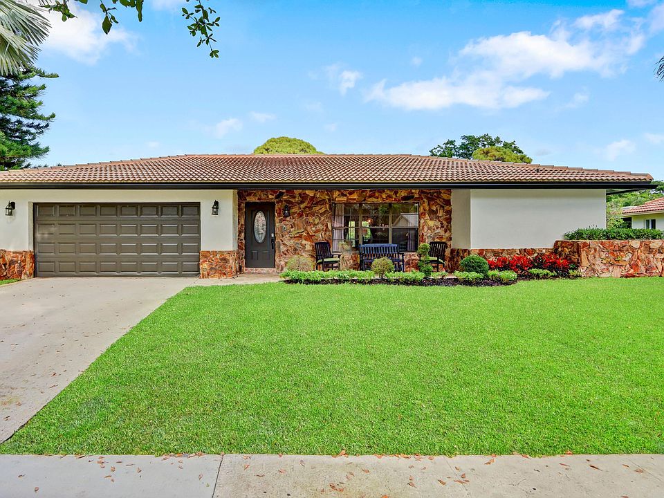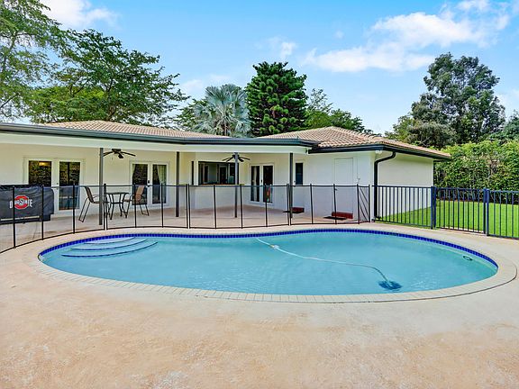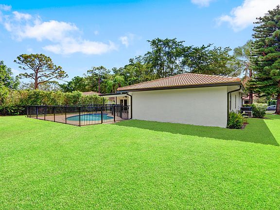 A rare find in Millpond, a most desirable community in Boca Raton. This one-story home of 3 bedrooms & 2 1/2 baths located on a quiet cul de sac on over 1/4 acre offers a beautiful sunny oversized fenced backyard with a large pool. This home features hardwood flooring; flat walls,knockdown on ceilings. The kitchen offers dark wood cabinets, granite counters & backsplash,stainless steel appliances. The remodeled primary & secondary bathrooms feature white self-closing cabinets,marble counters, porcelain flooring & subway tiles in the showers. Roof-2021; AC-2019,ceiling fans-2019,new door hardware-2022;travertine porch-2022;updated irrigation system-2020;security system-2019 with ring doorbell,floodlights,3 keypads,motion & window sensors,CO detector;keyless entry at front, garage & side doors; garage door entry with remote entry app. Millpond is charming offering 2 parks with playgrounds, walking paths, tennis courts and abasketball court, plus a low HOA fee.