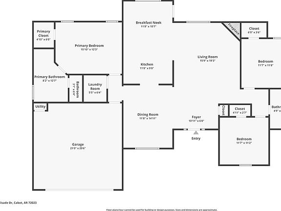 Step into this charming 3-bedroom, 2-bath home in the serene town of Cabot, boasting 1,695 square feet of thoughtfully designed living space. This lovely abode features a spacious 2-car garage, providing ample room for your vehicles and storage needs. The heart of the home, the kitchen, is adorned with beautiful granite countertops, offering both style and durability for all your culinary adventures. You'll also appreciate the practical addition of gutters, which help maintain the home's exterior with ease. Indulge in cozy evenings by the gas fireplace, creating a warm and inviting atmosphere perfect for relaxation or entertaining guests. Enjoy relaxing soaks in the jetted tub. Walk-in closets provide generous storage space, ensuring an organized and clutter-free living environment. Conveniently located, this home is close to a variety of amenities, making everyday living a breeze. Whether you're shopping, dining, or seeking entertainment, everything you need is just a short drive away. This delightful home in Cabot combines comfort, style, and practicality, making it the perfect place to create lasting memories. Be sure to check out the 3D tour and aerial drone footage.