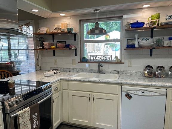 This upgraded brick home is situated on Red Oak Drive in Waycross, Ga. Centrally located on a large lot with a fenced in back yard featuring a 20X20 shop with a loft. Just off from the garage is a nice storage room equipped for a freezer and houses the new water heater. The manicured lawn is supplied by a well fed sprinkler system with a new timer. Step inside and enjoy spacious living boasting 3 bedrooms, 2 bathrooms, a formal dining, formal living room, sunroom, completely remodeled laundry room. The cozy fire place has a live edge cedar mantel. Kitchen updates include appliances, cabinetry, and open shelving. Recent updates include a fresh coat of paint, new flooring, new lighting, new ceiling fans, expanded drive way, new entry doors, shutters, porch post, and much more! The dwelling is meticulously maintained and offers many interior features you are sure to love. Call today for a viewing of this impressive property!