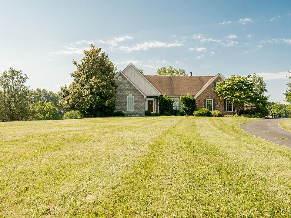 Situated on 5 acres, this home offers a private oasis and a place for horses with stunning views from every angle. The gorgeous leaded-glass entry and engraved mahogany entry door ushers you into a marble foyer. This flows to a great room w/ cathedral ceiling & fireplace, overlooked by a versatile loft space with built in shelving. The master suite offers its own fireplace, walk-in closet, separate shower & soaking tub. Relax & take in your private view of the pastoral setting & pond. The kitchen flows to a tiled sunroom & accesses a large multi-level rear deck. There is a spacious 36'x36' 3 stall barn, which offers a tack room feed room, grooming area, wash rack and hay loft. The entire subdivision is ringed by a 15 ft wide bridle/walking path. This is a truly special property!