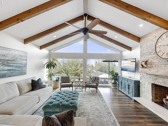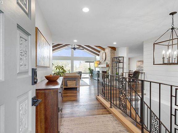 This is a great place to be, a rare West Linn find. Located on a corner lot where the streets are lined with sidewalks and trees, the home is within pedestrian range of the Palomino Loop Trail and a short car ride to Mary S Young State Park. Amazing views of Mt Hood create a "staycation" feel. With fencing in the rear, the large yard offers room for enjoyment. The meticulously maintained covered deck is the perfect platform for the resident rockstar chef. Your outdoor furniture transforms the space into an extension of the home, ideal for socializing, or for relaxing after a successful day. Inside, the home offers a surplus of comforts. Hardwoods provide warm flooring in the entryway, living areas, and kitchen, reflecting bounteous natural light. The 2 crackling fireplaces will lend warmth to many gatherings. The large kitchen is a delightful arrangement of inspiring counter space and major appliances. A classic island configuration maximizes workspace and flexibility. Conveniently located on the main-floor, the primary bedroom offers tranquility at the end of the day. In addition to the convenience of the private bathroom with a walk-in shower, you will find plenty of walk-in closet space to let your wardrobe breathe. The other spacious 5 bedrooms, with plenty of closet space, offer privacy and elbow room. A driveway with ample accommodation for visiting vehicles leads to an attached three-car garage that is available for its original purpose, or you can get creative by treating it as additional flex space. The finished walkout basement has a huge bonus space with a mini-kitchen as well as a family room, large craft room, 3 of the bedrooms, a full bathroom, and plenty of storage. It can easily be used as guest quarters or multi generational living. Don't let this be the one that got away.
