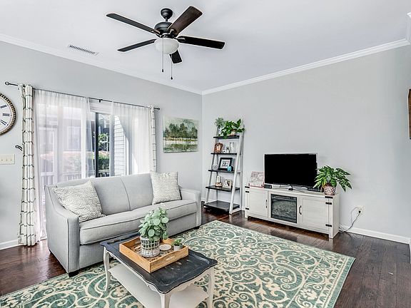 Warmer weather is here-Just in time to enjoy all of the amenities this lovely townhouse has to offer including Community Pool, Cabana, Beach area, Sand Volleyball, a Lake Dock and walking trails. This hard to find 3 bedroom, end-unit townhouse is light and bright and has a large kitchen with island and stainless steel appliances, dining area, oversized living area overlooking relaxing screened in porch, hardwood floors. Upstairs you will find 3 bedrooms including a main suite with built-in closet, tray ceiling and bath with dual vanities. Plenty of storage space, garage and lots of spaces for guest to park. Convenient location near all major highways, shopping and restaurants.