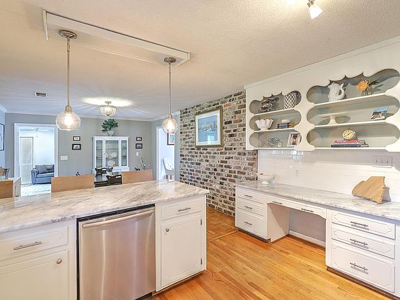 Beautifully maintained and upgraded brick home in a great location with easy access to 526. Check out the curb appeal! This home has features you don't normally find in a brick ranch. Huge 2 car garage with separate storage room and attic access. Enter through the garage into a tiled bonus room great for office, mud room, playroom, and then a separate laundry room. The kitchen has updated quartzite counters, tile backsplash, and a beautiful exposed brick wall as a backdrop to the dining area. The den is spacious with great natural light and a wood burning fireplace. Down the hall you will find 3 bedrooms and 2 full baths. Both bathrooms have been fully updated! Master suite has two closets, one being a large walk-in. Out back you will find a large fenced-in yard, great for entertaining. The screened in porch has new tile flooring. The backyard structure has power and a firepit and provides a great place to cookout, host oyster roasts, and more. Park your boat on the gravel side yard- No HOA! Architectural roof is only 5 years old. HVAC was replaced in 2010 with ductwork in the attic. Optional pool membership available in the neighborhood for minimal fee. Come see this one and you will fall in love.
