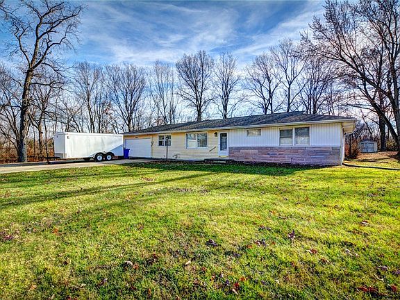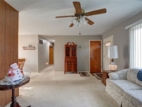 Great 2 Bedroom with possibility to add a third bedroom. Both bedrooms are spacious, with a half bathroom off the main bedroom. Main bathroom has been updated complete with walk-in shower. Spacious living room with custom built-in's. Living space opens to dining area with sliders to backyard. Backyard backs up to wooded area for tons of privacy and perfect place to watch nature. Just off the kitchen is the den/family room with gas fireplace. 2 car attached garage with space for work space/storage. Attic access in garage as well. Both sheds stay. Believed to have hardwood floors under carpet but not confirmed. Room dimensions are estimated. So much potential with this Home!! Current owners have loved living here for over 30 years! Home being sold as-is.
