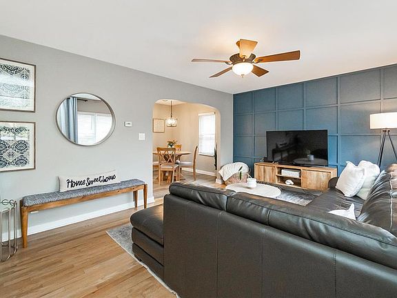 • Description: Hardwood, ceiling fan, powder room