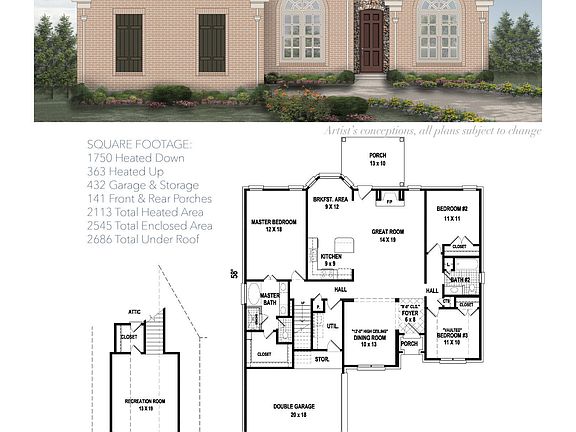Great Honeysuckle plan has a large great room for entertaining and a kitchen island for serving guests. Bedrooms are the split plan, with a 19 X 13 upstairs bonus room that could be that 4th Bedroom.