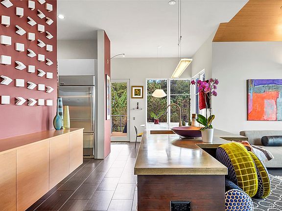 - Concrete Counters, Eat-in Kitchen, Entrance Foyer, High Ceilings, Kitchen Island, Open Floorplan, Pantry, Primary Suite, Vaulted Ceiling(s), Walk-In Closet(s)