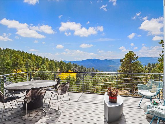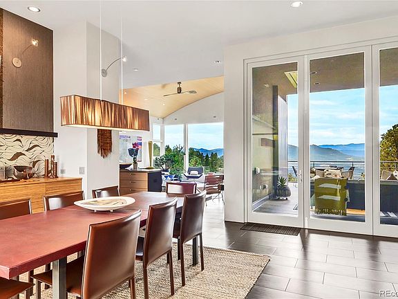 Live the outdoor lifestyle you've been waiting for! Truly exceptional custom modern home with designer finishes, stunning views and main floor living. The great room is a wow, for sure, featuring a fireplace wall, curved wood ceiling, and expansive wall of windows that perfectly capture the views. You will find few better places to host a dinner party! Your guests will enjoy the courtyard, and when dinner is finished, everyone can head through the completely open Nana wall to enjoy the great outdoors under the stars. The cleverly designed kitchen has the prep & cooking area concealed in a private galley with the main entertaining island front & center. For morning coffee or quick meals, there is also a casual dining area surrounded by huge windows to enjoy the grazing elk herds. One home office is located behind the kitchen with built-in cabinetry to keep life organized. The more formal home office is off the foyer with a door for privacy. The main floor primary bedroom it's tucked away for complete privacy and has a modern fireplace for warmth, a vaulted ceiling, great windows to gaze upon the views and a spa-like bathroom. A wall with a whimsical wave and built-in art niche is the highlight of the lower level walk out family room. The lower level also has additional space for workout equipment, a game table, plus three bedrooms and three baths. This home just may have the most amazing outdoor living in all of Genesee! The front courtyard greets guests with a modern steel gate, large stepping stones, a cool water feature, and tasteful landscaping that offers minimal maintenance! The back deck offers outstanding views and infrared heaters, so it can be enjoyed year-round. The home is situated on a peaceful lot with prime views, easy access to hiking trails & a gentle grade. Genesee offers 11 miles of hiking trails, 1200 acres of open space, 2 community pools, 4 tennis courts, award winning schools & many organized social groups.