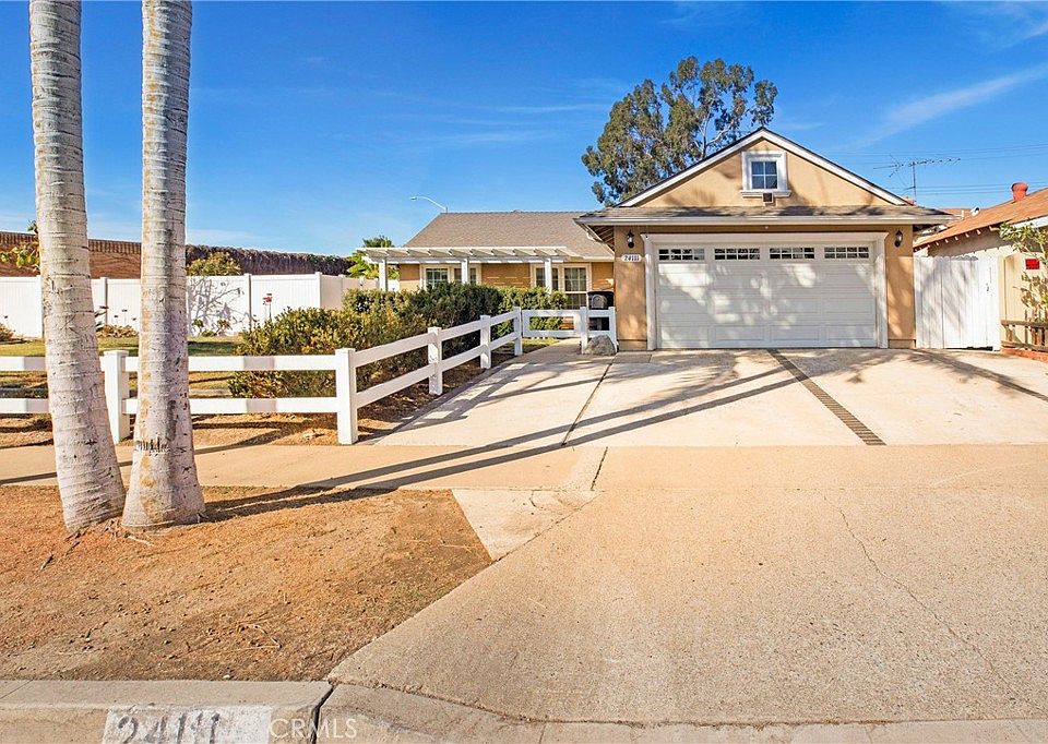 Welcome to 24111 Silverbay Drive, a charming single-level home situated on a spacious corner lot. This well-maintained property offers 4 bedrooms and 2 bathrooms, providing plenty of room for family and guests. The inviting kitchen features beautiful granite countertops, a dishwasher, microwave, and a gas range, along with a cozy nook area perfect for casual dining. Relax in the warm, welcoming family room with a fireplace, ideal for cozy nights in. A sliding door leads to the generous backyard with covered patio and offering ample space to an amazing garden which features a plethora of fruit trees and plants including Grapefruit, Orange, Lemon, Avocado, Dragon Fruit, Guava, Tomato, Eggplant, Banana and much more. With no steps throughout the home, this property is perfect for easy, comfortable living. The attached 2-car garage provides convenience and additional storage. The driveway is oversized great for parking. Close proximity to shopping and restaurants. Don’t miss the opportunity to make this wonderful home yours!