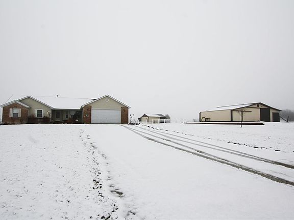This 3-bedroom 2 full bath home sits on a 5.77-acre mini farm with a stocked pond. Awesome 48x24 horse barn with 12x12 stalls, each stall has its own automatic watering system with heaters. In addition, there is a 24x24 pole barn with a 24x15 lean to currently being used as a chicken house. This ranch home is 1776 sq ft of living space including a large great room with cathedral ceiling, open staircase to lower level and a cozy pellet stove. Separate dining rm and large kitchen with breakfast bar and breakfast room. Main floor laundry. The main bedroom suite has a cathedral ceiling, whirlpool bath, separate shower & walk in closet. Walk out the back door to the conveniently located hot-tub. Heated garage. The lower level is unfinished with a roughed in bath and walk out. New water softener and new septic system pump. So many extras included. Fully furnished, many tools, 2 refrigerators, 9000-watt generator, Pit Boss Smoker. Please see attached list for additional items. Additional Rooms: Mud Room