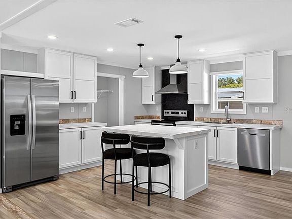 Own your own land with city sewer and city water! Experience the perfect blend of modern living and natural beauty with this BRAND-NEW manufactured home, situated on a lot that you own! Offering 3 bedrooms, 2 bathrooms, and over 1,400 square feet of thoughtfully designed living space. From the moment you arrive, you'll be charmed by the recessed dormer over the front door with vertical vinyl accent, and vinyl door and window trim. Step inside and immediately appreciate the high-quality finishes and attention to detail, from the 4-panel board and batten accent wall or the luxury linoleum flooring throughout, to the open- concept layout that effortlessly connects the living, dining, and kitchen areas-ideal for entertaining. The chef-inspired kitchen is a true highlight, featuring brand-new stainless steel appliances, a sleek chimney range hood, stainless steel sink with a gooseneck faucet, 42" shaker-style cabinets, and canopy-style pendant lighting hanging over the center with a breakfast bar. The primary bedroom offers a serene retreat, complete with a large walk-in closet and a luxurious en-suite bathroom featuring a free-standing soaking garden tub, separate 60" shower, and dual vanities with cubby holes and a bank of drawers-perfect for keeping all your essentials organized. Two additional bedrooms provide comfortable space for family or guests, while the second full bathroom includes a single vanity and a tub/shower combo, perfect for letting guests soak the day away! Additional upgrades include a dedicated laundry room for added convince, LED recessed lighting, Energy Star Certified w/ R-13 Wall; R-22 Floor, R-38 Roof, cobra ridge venting system with algae-resistant shingles, and craftsman-style trim. Located in the Astor Forest of Astor, FL you'll have easy access to a variety of local amenities, including shopping centers and restaurants. This home is at a prime location with no HOA and no lot rent! Don't miss out on this incredible opportunity to make this brand-new home yours! Schedule your viewing today and experience the best of Florida living!