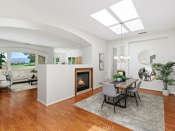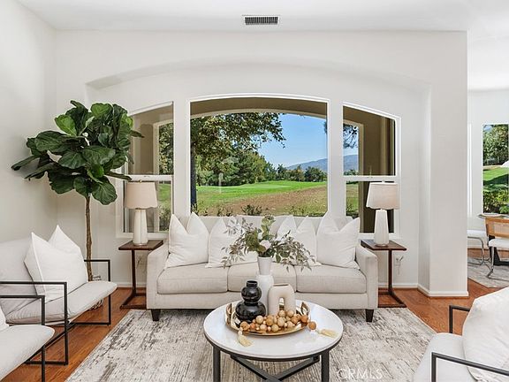 GOLF COURSE VIEWS • OWNED SOLAR • ONLY ONE NEIGHBOR • PERFECTLY POSITIONED ON THE 2ND GREEN • YOUR RESORT LIFESTYLE AWAITS! Located in the highly sought-after 55+ gated community of Trilogy at Glen Ivy, this beautifully maintained single-story home sits on the 2nd green of the Glen Ivy Golf Course, offering stunning views from the main living areas, breakfast nook, and primary suite. With a neighbor on only one side, you'll enjoy added privacy in a tranquil setting. Inside, a bright, open layout is filled with natural light. To the right, the formal dining room features a dual-sided fireplace shared with the spacious family room—perfect for relaxing or entertaining. To the left, the guest bedroom and full bathroom are located at the front of the home for maximum privacy. The open-concept kitchen includes a pantry and a breakfast nook overlooking the green, along with an electric range and a gas connection available if a gas range is preferred. A bonus counter space near the laundry room is ideal for a coffee bar or hobby area. The den, positioned between the bedrooms, makes a perfect home office or optional third bedroom. The spacious primary suite at the back of the home enjoys panoramic golf course views and direct patio access. The en-suite bath offers a walk-in shower, dual sinks, a private water closet, linen storage, and a large walk-in closet. Additional highlights include an interior laundry room, attached two-car garage, and owned solar, providing energy efficiency and long-term savings. A golf cart is available for purchase, making it easy to cruise to the clubhouse and enjoy all the amenities Trilogy has to offer. Trilogy at Glen Ivy offers a true resort lifestyle with indoor/outdoor pools, tennis and pickleball courts, a fitness center with an indoor walking track, bocce and horseshoe courts, billiards, craft and art studios, photography rooms, and more. The community hosts regular live music and events at the Grand Pacific Crest Lodge and amphitheater. Enjoy 9 miles of private, golf cart–friendly roads with scenic views—all minutes from Glen Ivy Hot Springs, Tom’s Farm, dining, and shopping. With a low HOA that includes front yard maintenance, this home offers the perfect blend of comfort, convenience, and community. Welcome Home!